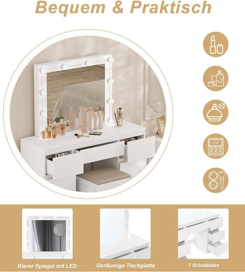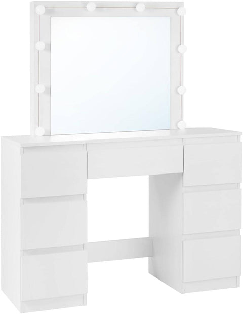 Rootz White Dressing Table - Vanity Desk - Makeup Table - Adjustable LED Lighting - Ample Storage - Durable Design - 110cm x 140.5cm x 39.5cm