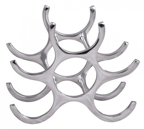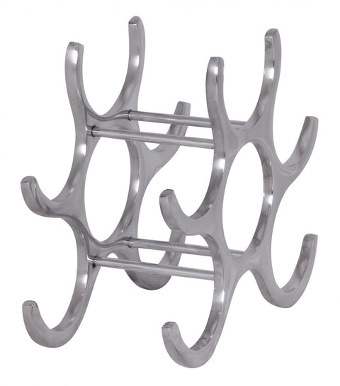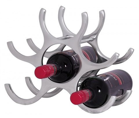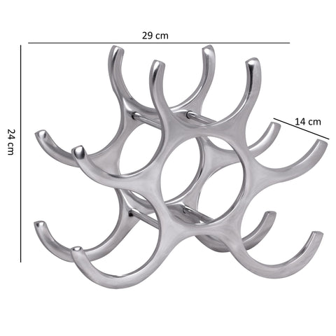 Rootz Wine Rack - Silver - Holds 6 Bottles - Modern Flat Design - Stylish Metal Bottle Holder for Kitchen Shelf
