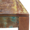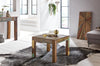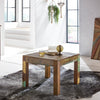 A perfect blend of elegant design and functionality, featuring a square table top for versatile storage, unique individual grain and color variations, sturdy solid wood legs for a firm stand, and a sustainable construction using recycled mango wood from old fishing boats, all topped with a protective lacquer coating for easy maintenance and lasting beauty.