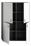 Enhance your living space with The Rootz X2TAT07 storage cupboard. Its deep-drawn grey melamine body and matt white front with 4 doors and 4 shelves provide a systematic and timeless modular furniture solution.