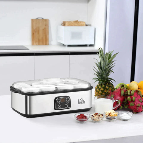 Rootz Yogurt Maker - Yogurt Machine With Lcd Display - 8 Yogurt Jars With Glass Lids - Stainless Steel - Glass - Silver - 36 x 18.8 x 14 cm