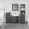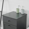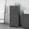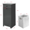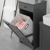 - Modern design bathroom cabinet features a cupboard with drawer and concealed laundry basket.