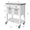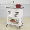 - Modern design kitchen trolley has stainless steel worktop, 2 drawers, 2 slatted baskets and open storage shelf.