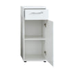 Unveiling the Monte standing cabinet by Rootz, designed for the modern bathroom. This stylish and contemporary piece, boasting a white high-gloss finish in front and a white melamine body, brings both elegance and ample storage to your space. Measuring at 37 x 87 x 34cm, it's a compact yet efficient solution for your bathroom essentials.