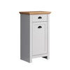 The chest of drawers is thoughtfully crafted in a delightful light grey and artisan oak color combination, adding a touch of elegance to your bathroom decor.