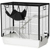 STURDY CONSTRUCTION: The small animal cage is made of metal and has a removable plastic floor pan. It comes with a drinking bottle, a feeding bowl, a platform with a ramp and a hammock.