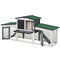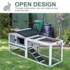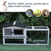 This small animal hutch from Rootz consists of two parts: the main house and a large exercise area. It features a large main room to move around freely, a ramp for easy boarding, an opening roof, a tilted and extendable shelf that's easy to clean, and a gray and white waterproof paint. It is equipped with a high metal fence for the run to keep them safe while outside enjoying the fresh air.