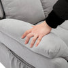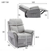 This stylish gray lounge chair offers optimal relaxation with an adjustable backrest from 100 to 130 degrees and an integrated footrest. Padded armrests, high backrest, and a practical side pocket add to the comfort and functionality. Ideal for any living room with dimensions of 82L x 92W x 99H cm and a load capacity of up to 100kg.
