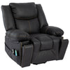 Experience ultimate comfort and relaxation with our black PU leather electric massage chair. This luxurious armchair offers an 8-point massage and heating function that specifically relaxes and invigorates your muscles. With two side pockets and integrated cup holders, you always have everything you need close at hand. The thick padding and electric remote control make this armchair the perfect addition to your living room.