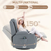 Experience true comfort with the Rootz massage chair. Whether you're looking for cozy evenings watching TV, moments of relaxation after work, or special pampering moments, this massage chair from Rootz offers everything you need for your relaxation. Thanks to 8 vibration heads, your body will be pampered with a soothing massage. The integrated heat function in the backrest ensures a pleasant atmosphere.Adjustable Backrest and Leg Rest: The adjustable backrest can be adjusted up to 150 degrees, and the leg rest can be pulled out so you can lean back and relax in ultimate comfort.8 Vibration Massage Points: Enjoy 8 vibration massage points on the back, waist, thighs, and calves, with different modes and intensities to suit your personal preferences and needs.Heating Function: The heating function in the lumbar area provides additional comfort, making it perfect for those chilly evenings or for soothing sore muscles after a long day.Soft Armrests and Deeply Padded Pillow: Soft armrests and a deeply padded pillow provide a cozy experience, ensuring that you can relax in complete comfort.- Color: Light gray