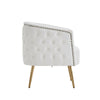 This beige reading chair combines comfort and style in an elegant design. Measuring 65.27L x 64.77W x 73.66H cm and with a seat width of 48.2 cm, it offers ample space for relaxation. The chair is made of high-quality solid wood and metal, while the high-density foam provides excellent support.