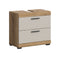 The wall-mounted base cabinet in matte Brown and White imitation (37 x 79 x 24 cm) offers ample storage space in a compact design with one door, one height-adjustable shelf, two closed compartments, and one open compartment. The reversible door hinge allows you to adapt the cabinet as needed, making it perfect for bathrooms or living areas with limited space. The high-quality MDF front ensures durability.