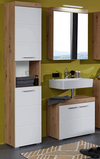 The perfect set for your bathroom: Everything you need to furnish your bathroom. A cabinet for under your sink and a mirror cabinet for above. You also have a long narrow cupboard in which you can store a lot.