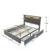 This stylish gray double bed with USB charging headboard and LED lighting offers functionality and elegance. Featuring two large drawers for storage, a pull-out guest bed, and a robust frame made of solid wood and stainless steel, it can support up to 250 kg. The eco-friendly materials and easy assembly make it an ideal choice for any bedroom.