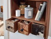 Enhance your kitchen with our unusual and modern spice rack. Featuring drawer fronts with different materials and an open storage compartment, it offers versatile organization for various items. Each wall shelf is lovingly handcrafted, creating a one-of-a-kind piece. Please note that slight color deviations or bumps may occur due to its handmade and natural construction. With two hangers for easy wall mounting, it suits different furnishing styles. Elevate your space with this distinctive and functional spice rack. Shop now for a unique culinary storage solution.
