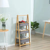 Do you love wooden furniture? Do you value a sustainable furnishing style? Are you interested in the trend material bamboo? Then our foldable shelf from Rootz could be just the right thing for you! The ladder shelf has 3 linen-look polyester fabric baskets and offers versatile storage options for cosmetics and accessories. Use it as a bathroom shelf or as a kitchen shelf. Thanks to its foldable design, this standing shelf is easy to store.