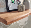 Discover the Rootz Rustic Edge wall shelf, meticulously handcrafted from Indian acacia wood with a unique grain and tree edge design. This light brown shelf offers both functionality and beauty, effortlessly floating on your wall and holding up to 10 kg. Apply a protective varnish for long-lasting preservation.