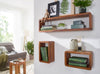 A sleek cube design with rounded corners and ample storage space. Made from high-quality sheesham solid wood surfaces sealed with protective varnish, each shelf is uniquely handcrafted, showcasing the natural beauty of the wood grain. With the option for wall or floor installation and a maximum load capacity of 12 kg per shelf, this set is the perfect addition to any living room, providing both functionality and style.