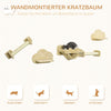 With this cat staircase, your pet tiger will have a nice, high place to play and relax. The stair set includes a hammock for napping, two scratching posts to sharpen claws and keep animals from getting on your furniture, and two platforms. The set is also suitable for smaller rooms as it does not take up any floor space: simply attach it to the wall and be amazed at how quickly your cat will feel at home here.Space-Saving Design: This cat stair set attaches to the wall, allowing you to utilize vertical space and keep your floors clear. Perfect for smaller rooms and apartments.Multi-Functional: Includes a hammock for napping, two scratching posts for claw maintenance, and two platforms for lounging. Your cat will have everything it needs in one compact set.Durable and Stable: Made of high-quality chipboard and plush materials, this set is designed for stability and resilience. It can support cats up to 5 kg comfortably.Protects Furniture: The scratching posts are covered in sisal, providing a dedicated area for your cat to sharpen its claws, thus keeping your furniture safe from damage.- Color: Beige