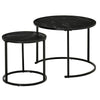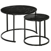 The Rootz Set of 2 Passionate Coffee Tables with Wood Optics Marble Plate and Black Metal Legs