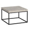 A sleek coffee table featuring a matt marble-look table top for storage and a sturdy metal frame.