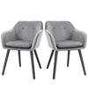 Add charm to your home with this set of 2 dining chairs. Featuring a bathtub shape design and velvet cover, these chairs offer comfort and style. The metal frame with wooden legs provides stability. Assembly required.