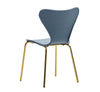 Introducing our Retro dining chairs, inspired by Scandinavian design with a perfect color combination of blue seat shells and gold-colored legs, offering a comfortably shaped seat shell for an enjoyable and stylish dining experience.
