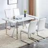 This set of 4 modern dining chairs combines elegance and comfort with an ergonomic and minimalist design. The faux leather and fabric backrest fits perfectly with different interior styles, from classic to contemporary. The chairs are equipped with plastic feet that protect the floor from scratches and damage while ensuring stability.