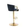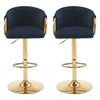 - Swivel Height-Adjustable Bar Stool with Elegant Black Upholstery and Gold Footrest