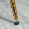 - Gold-colored chair legs give the chairs a retro glamor