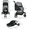 SAFE MATERIAL: The dog stroller is equipped with a universal EVA wheel at the front for easy pushing and rear directional wheels with brakes for easy parking. It moves easily on short grass and gravel paths. Two safety leashes are included to keep your pet safely restrained.