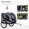 Drive your pet around the streets in style with this dog trailer for bicycle from PawHut. With a steel frame for a strong and reliable structure, the dog cart is made into a spacious design, featuring mesh windows all around to allow air to circulate properly, reflectors and a flag for visibility in the dark, zip fastenings for easy access and an safety anchor point for security. Made from weather resistant Oxford fabric, the body shelters your pet from light rain.