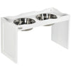 This modern feeding station from Rootz allows your dog to adopt a comfortable and gentle eating position, so that he doesn't have to bend down and strain his neck unnecessarily. Two stainless steel bowls are integrated into the housing of the feeding station, which can be removed and cleaned. The raised rim and lower platform help catch spilled feed and protect your floor. Decorated in elegant white, this feeding station fits perfectly into any interior.