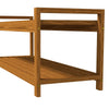 - The lower shelf of the wooden bench offers plenty of storage space for a wide range of utensils