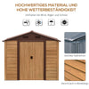 Store your garden tools and lawnmowers in this stylish and robust tool shed from Rootz. Made of steel and finished with a wood look, the shed combines the timeless beauty of wood and the strength of metal. With double lockable sliding doors and four windows, it offers safe and spacious storage for your tools and ensures optimal ventilation so your garden tools will be ready for use at all times.Durable Construction: Made from high-quality steel with a wood effect finish, this shed is built to last. The robust materials ensure long-term durability and resistance to the elements.Secure Storage: The double lockable sliding doors provide an added layer of security, ensuring that your valuable garden tools and equipment are safe from theft and unauthorized access.Optimal Ventilation: Equipped with four vents, this shed ensures excellent airflow, preventing moisture buildup and keeping your tools in optimal condition, ready for use whenever you need them.Spacious Design: With dimensions of 1.96 x 2.36 x 2.08 meters, this shed offers ample space to store a variety of garden tools, lawnmowers, and other equipment, making it a versatile storage solution.- Color: Brown