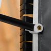 PRACTICAL: The beach chair for two people is equipped with two folding tables and has pockets on the inside in which you can store magazines or books, for example. If necessary, pull out the sunroof.