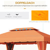 This chic gazebo from Rootz will transform your outdoor space into a practical and stylish meeting place with its elegant and thoughtful design. Its large size provides enough protection for you and several people. You can set up this garden pavilion in the garden and host a nice get-together with friends or family. Let this practical gazebo improve your happiness and quality of life.Spacious Design: The Rootz Garden Pavilion features a high and spacious design, providing ample room for gatherings and events, ensuring comfort for all your guests.Durable Materials: Constructed with a lightweight yet durable aluminum frame and a polyester canopy with PA coating, this gazebo is built to last and protect against direct sunlight.Enhanced Air Circulation: The roof includes ventilation openings that promote good air circulation inside, keeping the environment cool and comfortable during hot days.Privacy and Protection: Equipped with mesh net side walls to protect against mosquitoes and removable curtains to block wind and ensure privacy, this pavilion is perfect for any outdoor setting.- Color: Orange