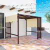 Enhance your outdoor living with the astonishing Rootz Pergola Pavilion. Perfect for winter festivals or sunny days, its sliding roof allows effortless adjustment to block the sun and provide shade. Crafted from durable materials, it exudes elegance while offering UPF30+ UV protection. Transform any garden into a luxurious oasis with this sleek dark brown pavilion, accented with metallic screens and a planter for a touch of greenery.