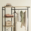 The Rootz Cloakroom Stand with Clothes Rail and Shoe Control Shelf in Brown and Black