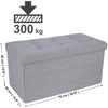 Dimensions: approx. 76 x 37.5 x 37.5 cm (WxHxD); Inner dimensions: 73 x 33 x 33.5 cm; The weight is 6.6 kg; Material: medium density fibreboard + linen.