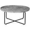 METAL FRAME: The metal frame and horizontal design of the round living room table provide a stable base. Vases, drinks and books can be easily accommodated on the tabletop.