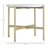 Be bold and bold with your home decor this season: get this eye-catching coffee table from Rootz in your home or office. It combines a gold-colored frame and a marble-look tabletop, which means that both colors create a beautiful contrast and complement each other. The sturdy metal frame is criss-crossed for added balance and support. The round table top is flat and offers practical storage space. The upper is easy to wipe clean.