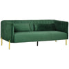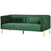 With this retro-design sofa from Rootz, you can make yourself comfortable without sacrificing your precious space. The three-seater sofa is ideal for compact spaces, yet spacious enough to relax with family and friends. The soft velvet-look upper, the thick seat cushion and the 2 additional cushions offer exceptional seating comfort. The green fabric and gold steel legs give it an elegant retro charm. Enjoy a comfortable living room couch without giving away a lot of space.