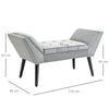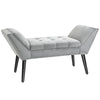 CONTEMPORARY LOOK: Featuring button-tufted cushioning, trapezoid arms, and rivet-decorated edges, this accent bench demonstrates the combination of modernism and will match your home decor.