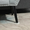 - Button tufted design, studded trim and flared legs showcase contemporary style