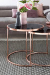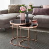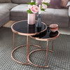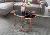 Introducing the Rootz Two-Piece Nesting Table Set, a modern and distinctive addition to any living space. With a reflective table top on a copper-colored frame, these tables are as stylish as they are functional.