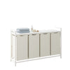 The Rootz Laundry Basket offers four spacious compartments to efficiently sort your laundry. Crafted from durable MDF and steel, this chic white piece serves both as a functional laundry collector and a stylish addition to your home. Its lightweight design and tipping protection ensure easy handling and stability, making laundry days a breeze.