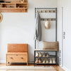 The Rootz Cloakroom Stand is the perfect blend of style and functionality. Crafted from durable wooden chipboard and steel, its elegant brown-black finish complements any decor. Designed with spacious hooks and a sturdy seat, it supports up to 80 kg. This essential clothes rack maximizes your entryway, providing a perfect storage solution for coats, bags, and more.