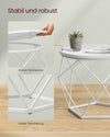 This Coffee table set of 2 with removable table top in snow white and cloud white is a stylish addition to your living space. Made of chipboard and steel, the large table is 50 x 40 cm and the small table is 40 x 36 cm. Each table can hold up to 20 kg and the total weight of the set is 7kg.