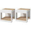 This set of 2 Rootz side tables is perfect for any home. These beautiful side tables with clean lines combine the wood look and white metal structure, making them ideal for various spaces such as the living room, bedroom, or office. The shelves offer ample storage for accessories and magazines, creating more space in small rooms.